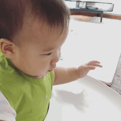 小酒非常不喜欢坐餐椅,坐不了多久就想要爬出来。注意力比姐姐小时候短得多,干什么事情都一小会儿就想要抛开,又被别的有趣的事吸引了。