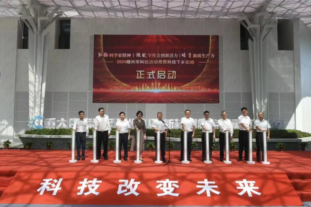 5月25日,以“弘扬科学家精神 激发全社会创新活力 培育新质生产力”为主题的2024年赣州市科技活动周暨科技下乡活动正式启动。市委常委、组织部部长田辉出席启动仪式并致辞,市委常委、市政府副市长何琦主持启动式。我院作为协办单位,院党组成员、副院长刘小全率直属各科研所(园)科技人员30余人参加活动。