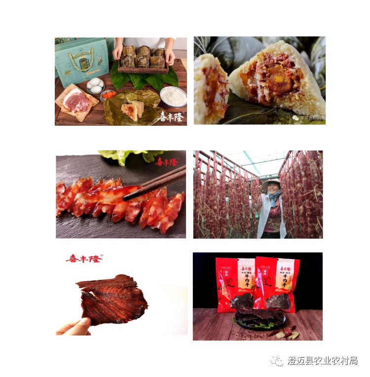 “瑞溪三宝”:即澄迈县瑞溪镇特色产品—粽子、牛肉干、腊肠。