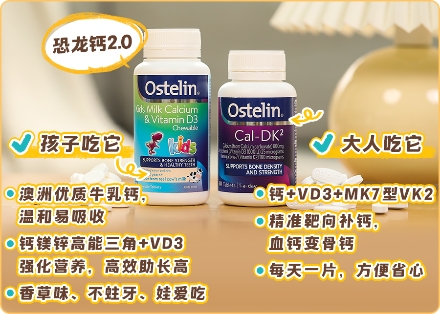 推荐安排上 Ostelin奥斯特林 DK2 成人钙片,一天一颗就能满足身体所需,特别省心。