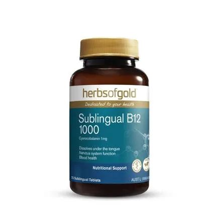 Herbs of Gold 1000mcg 维生素B12含片每片含有维生素B12 1000mcg,每天服用1片,温水送服或遵医嘱。