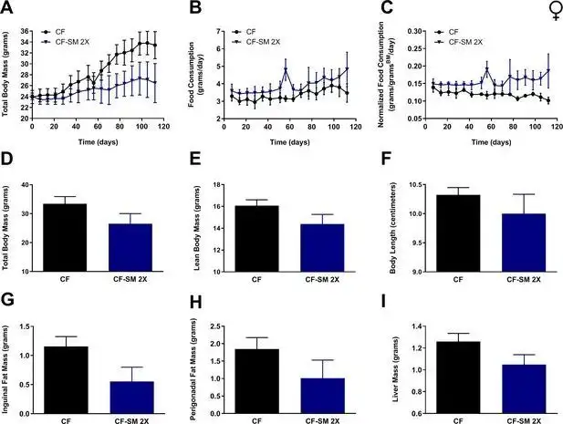 带着这个疑问,研究人员给小鼠喂养了有机硒化合物“硒代蛋氨酸(CF-SM)”,并评估了其体重、食物消耗量和身体状况,发现食用含硒蛋氨酸与含亚硒酸钠饮食的小鼠各项指标并无差异 。