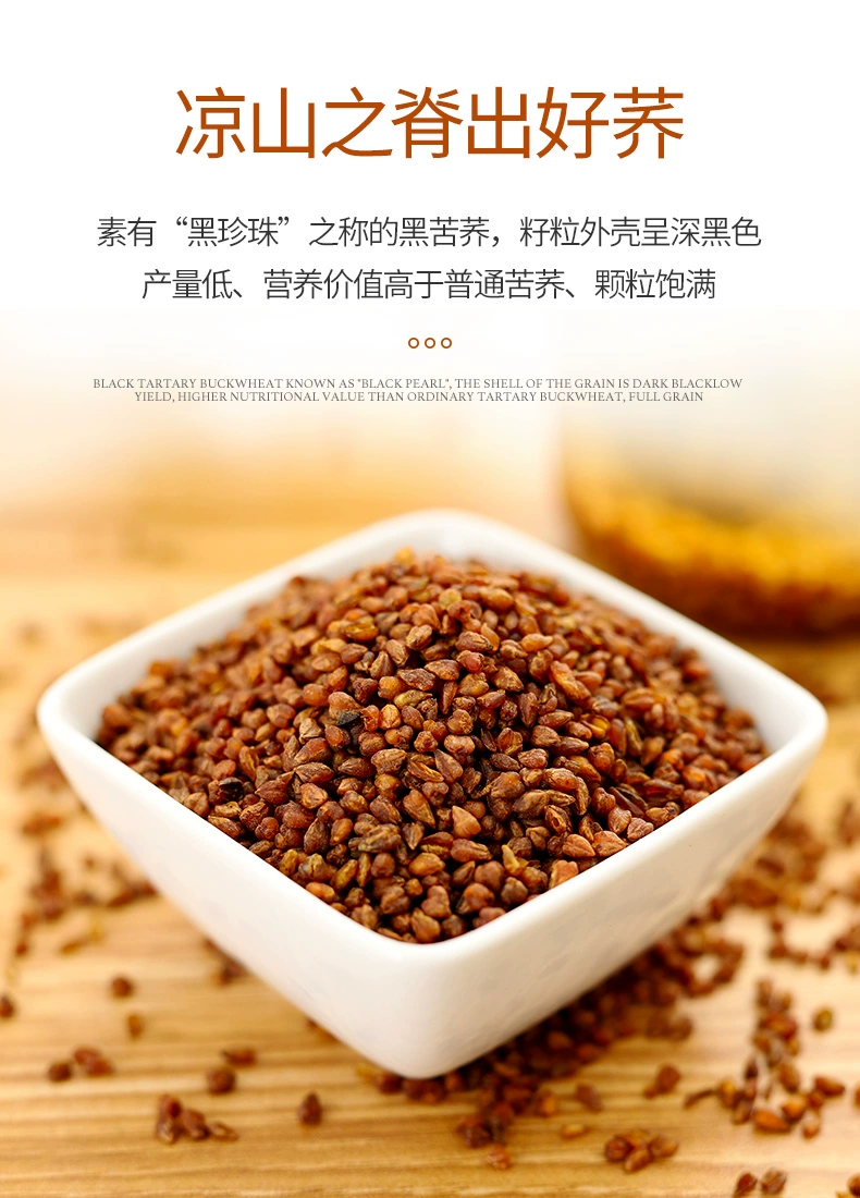 1、精选四川省凉山州海拔2500米以上纯天然苦荞茶米再加工成形、不添加任何香料,最大化保留各种有益物质,为您带来高品质天然、健康的黑苦荞茶。2、黑苦荞——属苦荞中的独特品种,外壳呈深黑色,名珍珠黑苦荞,独特的加工工艺使每100g黑苦荞茶中的芦丁含量比普通苦荞茶高出3至4倍。“黑”通常是质量的象征,好像“黑豆、黑米、黑醋”等都被认为是益于健康的黑色代表。3、黑苦荞茶富含黄酮化合物及类胰岛素蛋白,在其他谷物中几乎没有。它不仅有利于胰岛素的分泌,并对血糖也起到调节作用。持续饮用黑苦荞茶可改善口渴、口干、口苦等现象。