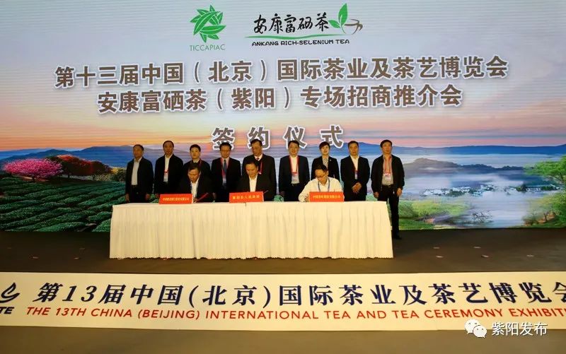 推介会上,中国茶叶股份有限公司、中国建设银行股份有限公司、紫阳县人民政府签订了三方投资建立中茶紫阳富硒茶庄园项目备忘录;紫阳县供销社、紫阳县供销电子商务有限公司、紫阳县龙潭茶业、紫阳茶业发展有限公司分别与天津市津南区供销社、天津市津南区供销万家日用品销售有限公司、北京亚运村常来青青茶社、北京三叶荼茶饮服务有限公司签订了茶叶购销意向合作协议。