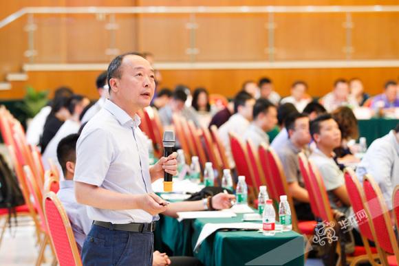 江津区委常委、宣传部部长辛华,向全国百家网络媒体主编介绍江津区情。记者 石涛 摄