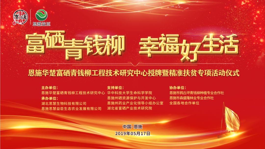 孟夏时节,万物并秀。5月17日,由恩施华楚富硒青钱柳工程技术研究中心主办,湖北思慧生物科技有限公司、恩施思慧益臣生态农业发展有限公司承办,恩施市鸦丘坪青钱柳种植专业合作社、恩施市森盛隆林业专业合作社及全国各地合作单位协办的“富硒青钱柳 幸福好生活”——恩施华楚富硒青钱柳工程技术研究中心授牌暨精准扶贫专项活动仪式在湖北恩施圆满举行。